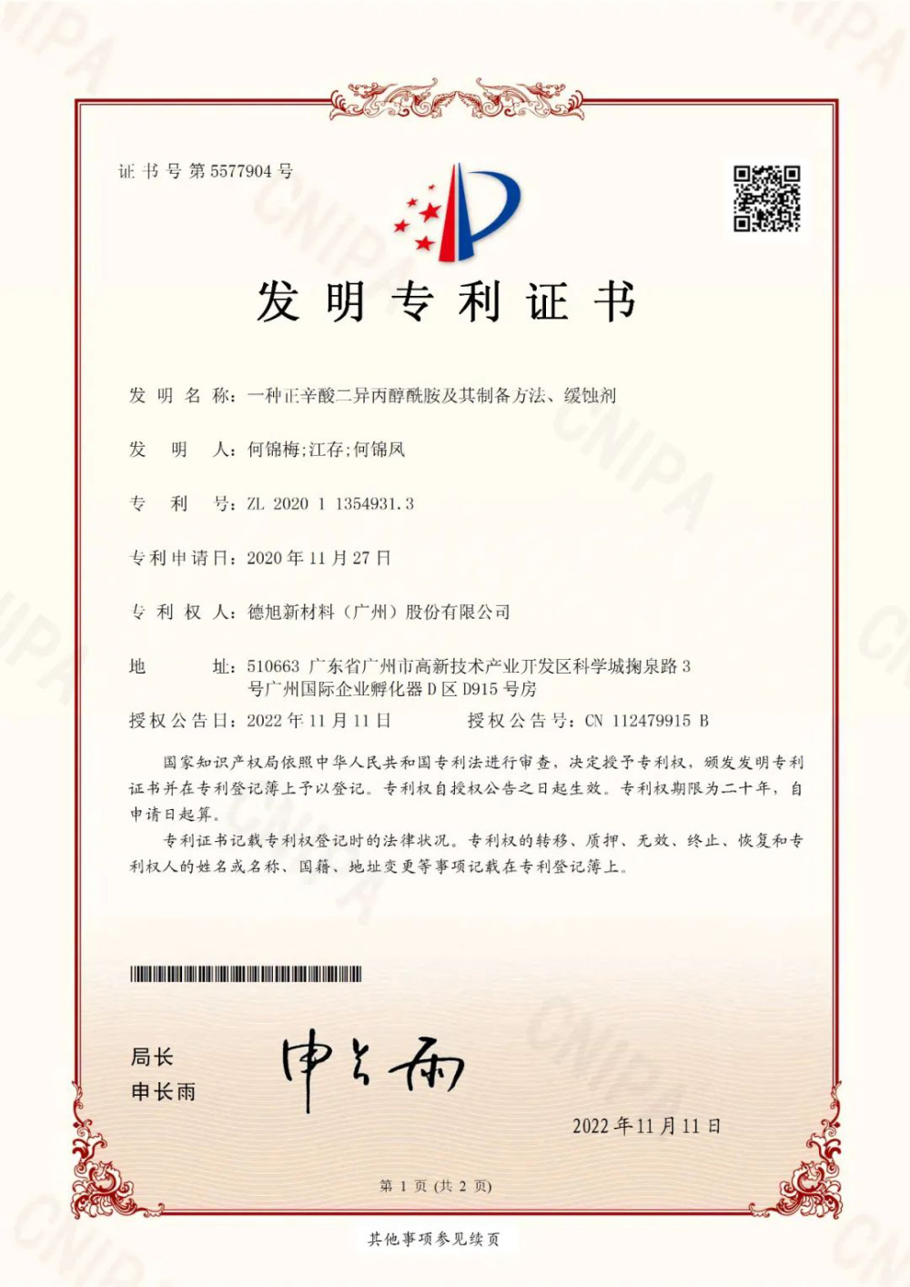 德旭新材料(廣州)股份有限公司成立于2012年,坐落于國內(nèi)新材料領(lǐng)域創(chuàng)新集聚區(qū)的廣州高新技術(shù)產(chǎn)業(yè)開發(fā)區(qū)核心位置——廣州科學(xué)城,是一家集研發(fā)、生產(chǎn)、銷售于一體且擁有自主知識產(chǎn)權(quán)的專精特新企業(yè)。長期專注于金屬材料的防腐蝕研究與創(chuàng)新,為汽車與船舶、航空航天、半導(dǎo)體及3C電子、新能源、水性防腐涂料等領(lǐng)域的金屬防腐蝕提供產(chǎn)品和解決方案。同時也服務(wù)于工業(yè)潤滑、金屬表面處理、工業(yè)、商用和民用重油污清洗和益智玩具等行業(yè)。公司產(chǎn)品獲得BASF(巴斯夫)、HP(惠普)、漢高、美泰、MOOSE、中國船舶、中國機(jī)械總院、安集、匯川、三環(huán)、晨光等國內(nèi)外知名企業(yè)的青睞。